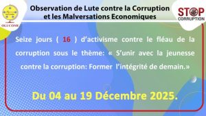« C’est aussi un obstacle de taille au développement et à l’atténuation de la pauvreté. La corruption menace l’humanité, plus particulièrement les pauvres. C’est pour cela que le monde entier, à travers l’Assemblée générale des Nations Unies, a décidé de mettre en place la Convention des Nations Unies contre la corruption. Selon les Nations Unies, là où il y a la corruption, on ne peut pas prétendre avoir le développement ni la démocratie ou encore avoir l’intégrité des dirigeants. »